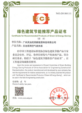 绿色建筑节能推荐产品证书