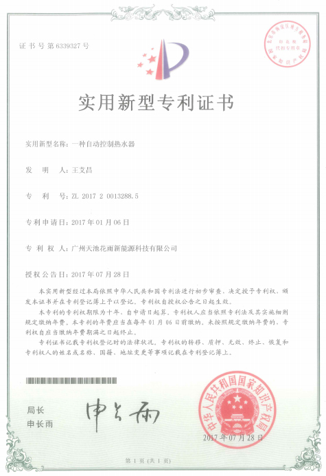 2018-11-20 14:25:17 次浏览所属分类:专利证书
